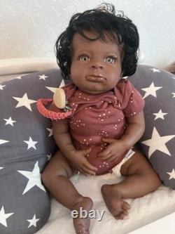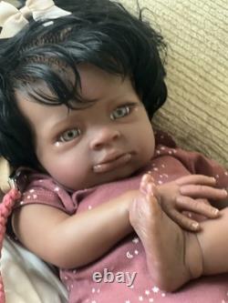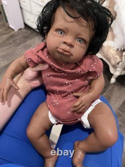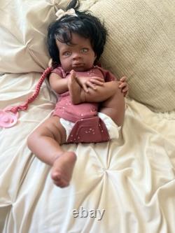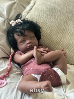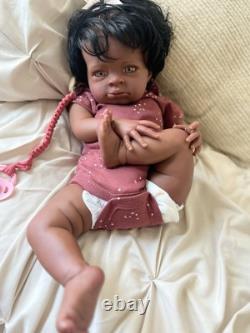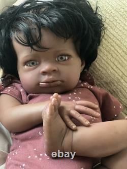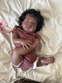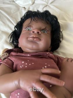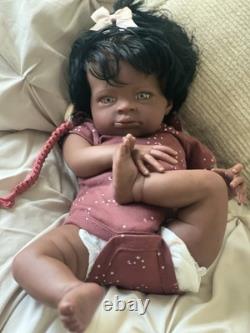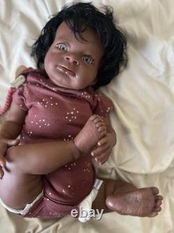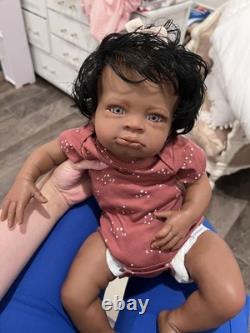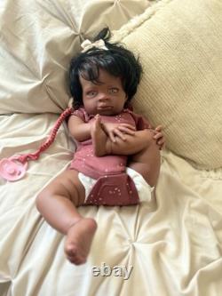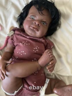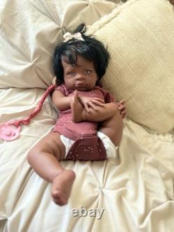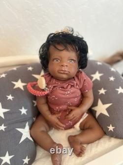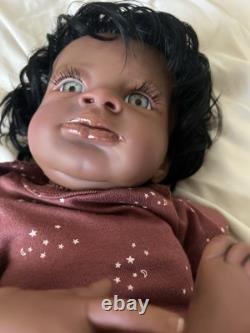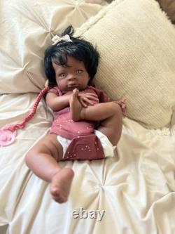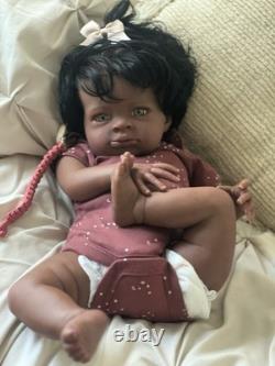 Beautiful ethnic reborn baby doll Macro rooted hair that can be styled and resin eyes with rooted lashes.